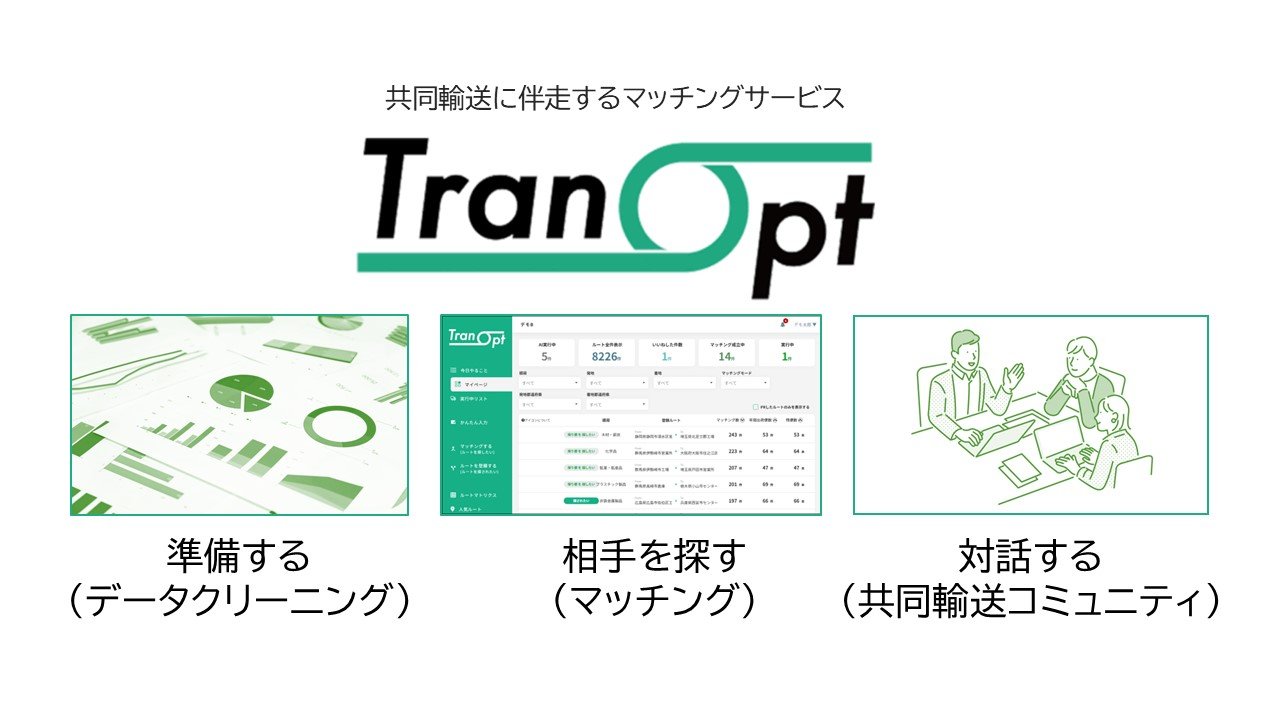 TranOptはマッチングを行うシステムを核に、準備段階から実運行までに伴走するサービスです。