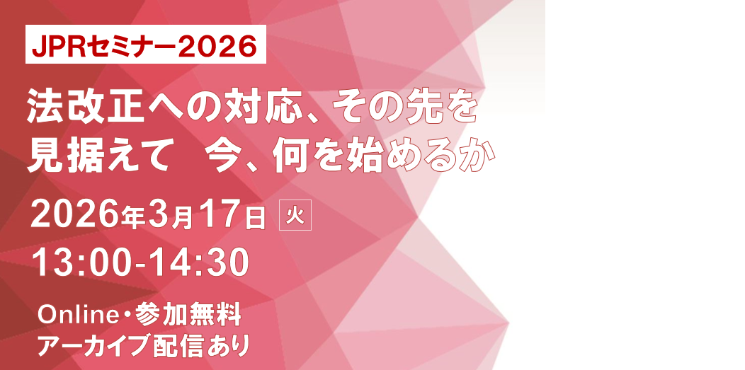 2026年3月17日(火)に開催するオンラインイベント「JPRセミナー2026『法改正への対応 その先を見据えて今、何を始めるか』」についてご案内します。