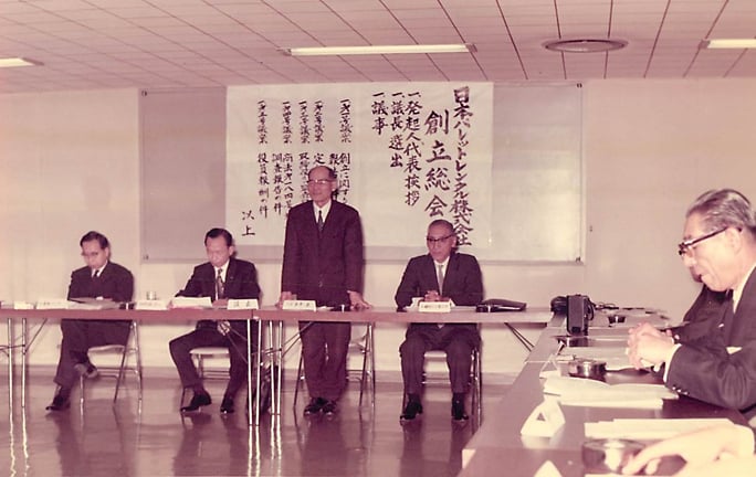しかし、制度・機構については実現できませんでした。当時すでに多種多様なパレットが流通していたためです。しかし、平原先生の周囲にはその理念に共感する人々が集まっていました。そこから「レンタル会社を通じて、少しずつ一貫パレチゼーションを広げよう」というアイデアが生まれます。平原先生は方針を転換し、人々の協力によって1971年レンタルパレット会社が設立されました。これが私たちJPRの創業の経緯です。