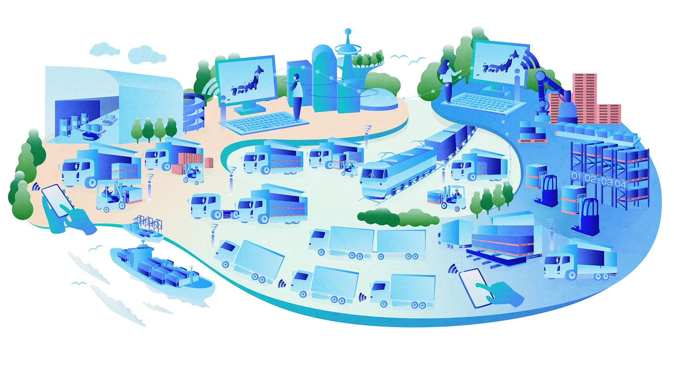 パレットデポから供給されたパレットは、企業から企業へとバトンタッチされ日本中を駆け巡っています。パレットの情報の管理はデジタル化されており、現在では積載商品の納品伝票の情報もデジタルでやり取りされるようになってきました。