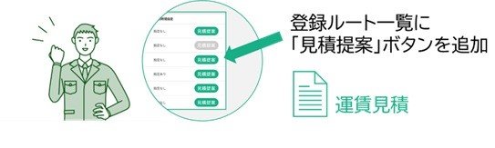 TranOptに登録されたルートを一覧表示する画面に「見積提案」ボタンを追加し、直接運賃見積の提案ができます。